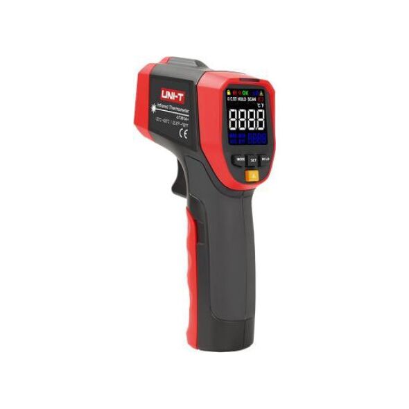 POMIAR TEMPERATURYZakres: -32°C ~ 420°C; -25,6°F ~ 788°FDokładność: >0°C: ?1,5°C lub ?1,5%, -<0: (?1,5°C + 0,1°C/°C); >32°F: ?3°C lub ?1,5%, -<32°F: ?(3°F+0,1°F/°F)Powtarzalność: 0,7°C lub 0,7%; 1,5°F lub 0,7%Stosunek odległości do powierzchni testowanej: 12:1 (95%)Czas odpowiedzi: <=250 ms (95% odczytu)Emisyjność: 0,1 ~ 1 (regulowana)Wrażliwość widmowa: 8 ?m ~ 14 ?mTyp lasera: klasa 2 (II)Moc lasera: < 1 mWDługość fali lasera: 630 nm ~ 670 nmDODATKOWE FUNKCJEWybór: °C/°FZamrożenie ostatniego pomiaruAutomatyczne wyłączenieWskaźnik niskiego poziomu bateriiWyświetlanie temperatury maksymalnej/minimalnej/średniej/różnicowejPodświetlany ekran LCDMożliwość montażu na statywieAlarm przekroczenia limitów górnego i dolnegoCECHY OGÓLNEZasilanie: bateria 9 VRozmiar wyświetlacza: 30 x 30 mmWymiary: 160 x 74 x 48 mmWaga produktu (bez baterii): 204 gAkcesoria: bateria, etui