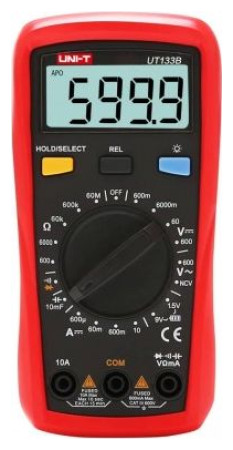 Pojemność: 9,999 nF/99,99 nF/999,9 nF/9,999 µF/99,99 µF/999.9 µF/9,999 mF ±(4%+2)