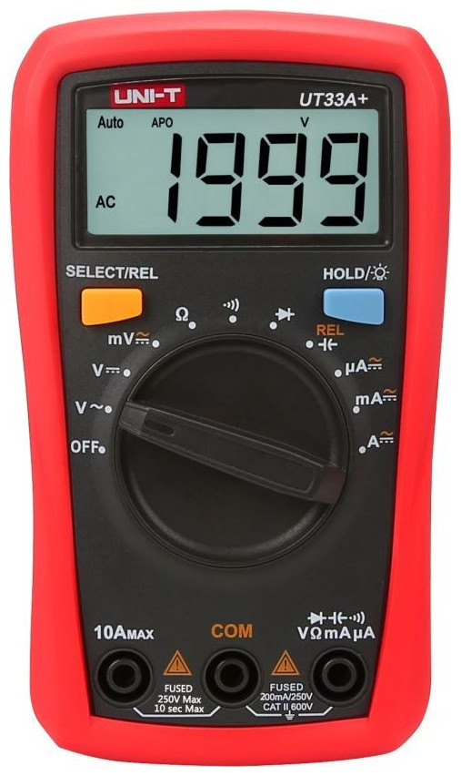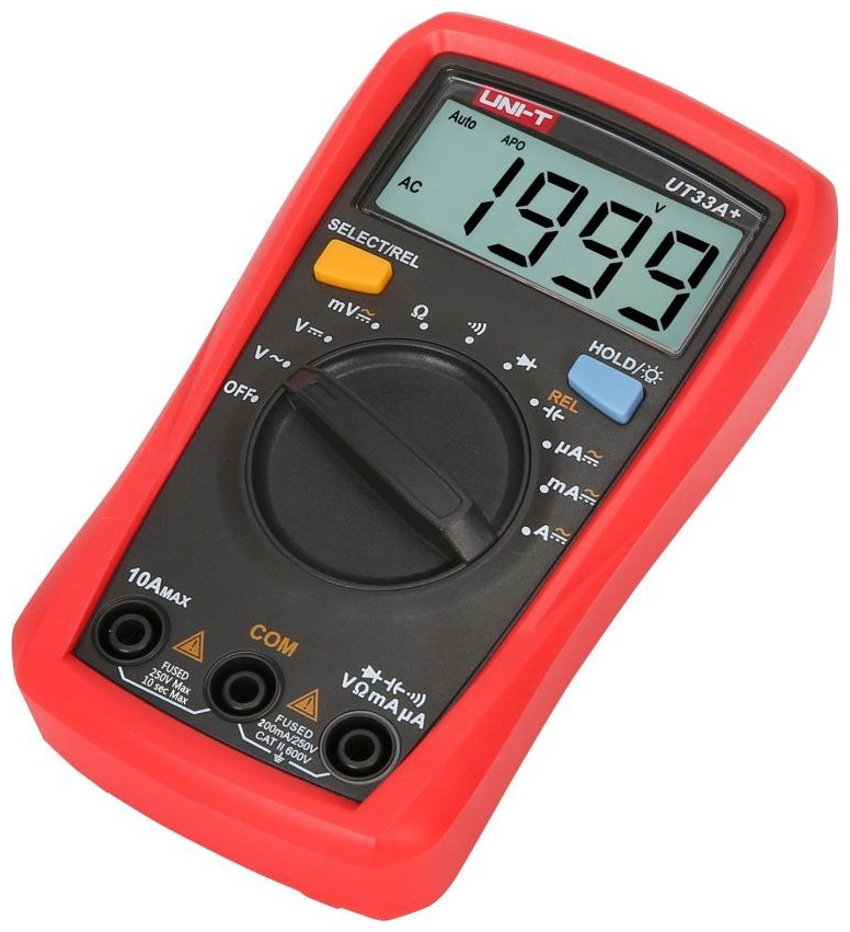 Natężenie prądu stałego DC: 200 µA / 2000 µA / 20 mA / 200 mA / 2 A / 10 A ±(1%+2)