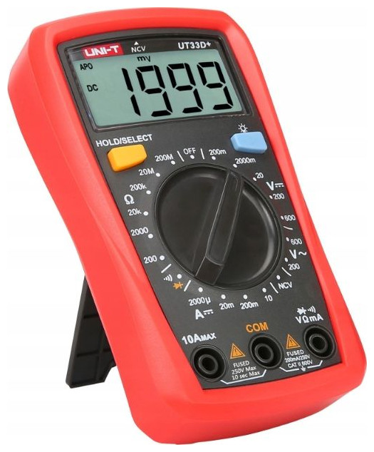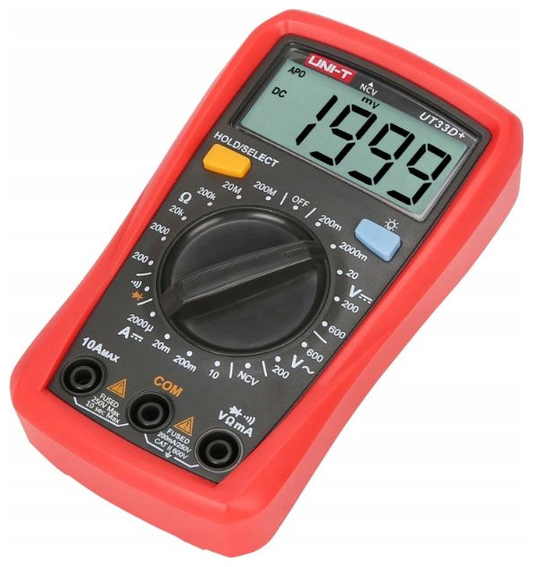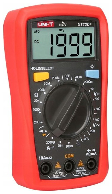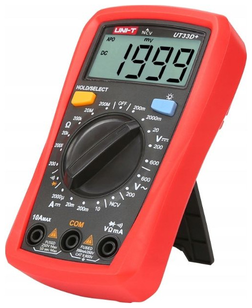 ΕΥΡΕΣ ΜΕΤΡΗΣΗΣ Τάση συνεχούς ρεύματος: 200 mV / 2000 mV / 20 V / 200 V / 600 V ±(0,5%+2) Τάση AC: 200 V / 600 V ±(1,2%+3) ρεύμα συνεχούς ρεύματος: 2020 μA / 200 mA / 10 A ±(1%+2) Αντίσταση: 200 Ohm / 2000 Ohm / 20 kOhm / 200 kOhm / 20 MOhm / 200 MOhm ±(0,8%+2) Δοκιμή διόδου Κύκλωμα ελέγχου συνέχειας ΠΡΟΣΘΕΤΕΣ ΛΕΙΤΟΥΡΓΙΕΣ Χειροκίνητη αλλαγή εύρους μετρήσεων Λειτουργία ανίχνευσης ηλεκτρικού πεδίου Πάγωμα της τελευταίας ένδειξης Ένδειξη χαμηλής μπαταρίας Μέγιστη ένδειξη: 2000 Οθόνη LCD με οπίσθιο φωτισμό ΓΕΝΙΚΑ ΧΑΡΑΚΤΗΡΙΣΤΙΚΑ Αντίσταση εισόδου τάσης DC: περίπου 10 MOhm Τροφοδοσία: μπαταρία 2x μπαταρία 1,5 V (R03) Μέγεθος οθόνης: 48 x 16 mm Διαστάσεις προϊόντος: 134 x 77 x 47 mm Βάρος προϊόντος: 206 g Αξεσουάρ: Μπαταρίες, καλώδια δοκιμής, θήκη{Type} Μετρητές τάσης . {Type} Μετρητές τάσης . {Type} Μετρητές τάσης . {Type} Μετρητές τάσης . {Type} Μετρητές τάσης . {Βασικές λειτουργίες} Μέτρηση τάσης AC. {Βασικές λειτουργίες} Μέτρηση τάσης AC. {Βασικές λειτουργίες} Μέτρηση τάσης AC. {Βασικές λειτουργίες} Μέτρηση τάσης AC. {Βασικές λειτουργίες} Μέτρηση τάσης AC