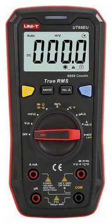 ----------- ZAKRESY POMIAROWE: ---------- Napięcie DC: 9.999 mV/99.99 mV/999.9 mV/9.999 V/99.99 V/999.9 V ±(0.5%+3) Napięcie AC: 9.999 mV/99.99 mV/999.9 mV/9.999 V/99.99 V/999.9 V ±(0.8%+3) Natężenie prądu stałego DC: 999.9 uA/999.9 mA/9.999 A/10 A ±(1%+2) Natężenie prądu zmiennego AC: 999.9 uA/999.9 mA/9.999 A/10 A ±(1%+3) Rezystancja: 999.9 Ohm/9.999 kOhm/99.99 kOhm/999.9 kOhm/9.999 MOhm/99.99 MOhm ±(0,8+2) Pojemność: 9.999 nF/99.99 nF/999.9 nF/9.999 uF/99.99 uF/999.9 uF/9.999 mF ±(4%+5) Częstotliwość: 99.99 Hz~9.999 MHz ±(0,1%+5) Współczynnik wypełnienia: 0,1% ~ 99,9% ±(3%+5) Temperatura: -40°C~1000°C ±4°C Pomiar współczynnika hFE tranzystorów Test diod Sprawdzanie ciągłości obwodu ----------- DODATKOWE FUNKCJE: ----------- NCV (funkcja wykrywania pola elektrycznego) Automatyczna zmiana zakresów pomiarowych True RMS Tryb REL: wyzerowanie odczytu Zamrożenie ostatniego wskazania Podświetlanie wyświetlacza Zapis wartości maksymalnej/minimalnej Automatyczne wyłączanie Wskaźnik niskiego poziomu baterii ----------- CECHY OGÓLNE: ----------- Zasilanie: 3x bateria AAA 1,5 V Wymiary produktu: 186 x 89 x 49 mm Waga produktu: 400 g ----------- ŚRODOWISKO PRACY: ----------- Temperatura pracy: 0°C ~ 40°C (32°F ~ 104°F) Temperatura przechowywania: -10°C ~ 50°C (14°F ~ 122°F) Wilgotność względna: 0°C ~ 30°C =