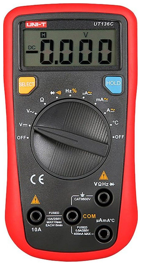 ZAKRESY POMIAROWE Napięcie DC: 1000 V ?(0,7%+3) Napięcie AC: 1000 V ?(1%+3) Natężenie prądu stałego DC: 10 A ?(1%+3) Natężenie prądu zmiennego AC: 10 A ?(1,2%+5) Rezystancja: 40 MOhm ?(0,8%+2) Temperatura: -40°C~1000°C ?(0,1%+4); -40°C~1832°C ?(0,1%+4); Pomiar współczynnika hFE tranzystorów Test diod Sprawdzanie ciągłości obwodu DODATKOWE FUNKCJE Automatyczna zmiana zakresów pomiarowych Zamrożenie ostatniego wskazania Wskaźnik niskiego poziomu baterii Automatyczne wyłączanie Podświetlanie wyświetlacza Maksymalny odczyt: 4000 CECHY OGÓLNE Zasilanie: bateria 2x bateria 1,5 V (R6) Rozmiar wyświetlacza: 56,5 x 36 mm Wymiary produktu: 175 x 83 x 53 mm Waga produktu: 330 g Akcesoria: Baterie, przewody pomiarowe, sonda pomiaru temperatury