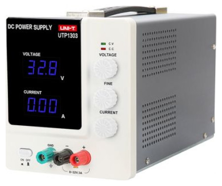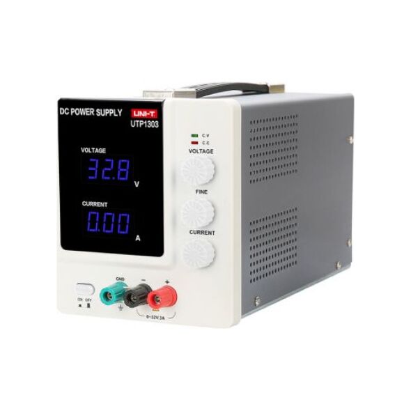 MIE0279 Zasilacz laboratoryjny Uni-T UTP1303Dane techniczne:Napięcie wyjściowe: 0-32 VPrąd wyjściowy: 0-3 AMożliwość płynnej i skokowej regulacji prądu i napięciaDokładność pomiaru: <= ±1% odczytu + 2 cyfryZabezpieczenie: przeciążeniowe, napięcioweWaga: ok. 5,6 kgWymiary: 145 x 174,7 x 283,5 mm