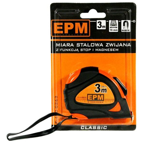 Αναδιπλούμενη μεζούρα από χάλυβα με λειτουργία STOP και μαγνήτη.