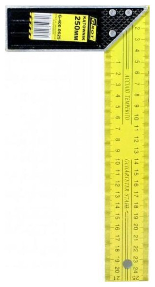 - γωνία από σκληρυμένο χάλυβα - πόδι από κράμα αλουμινίου, επενδεδυμένο με μαύρο βερνίκι - με κλίμακα χιλιοστών διπλής όψης - πάχος 0,8 mm ...{Type} Γωνίες . {Μήκος} 0,25 μ