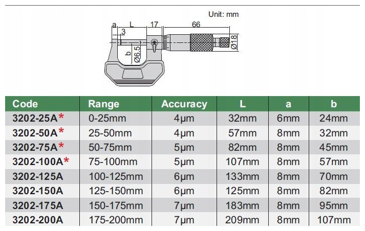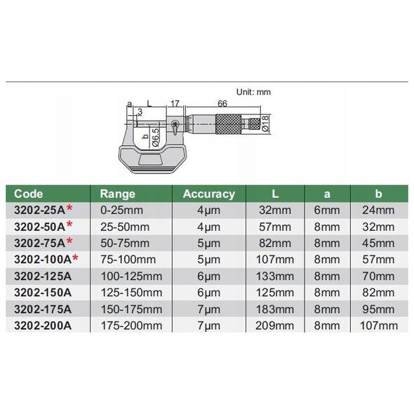 Μικρόμετρο Insize 0-25 Τυπικό /Πιστοποιητικό