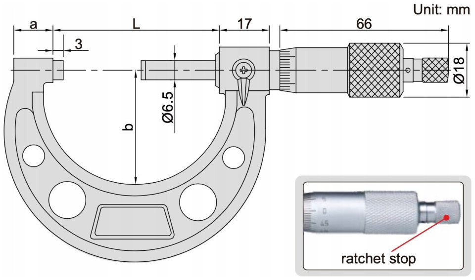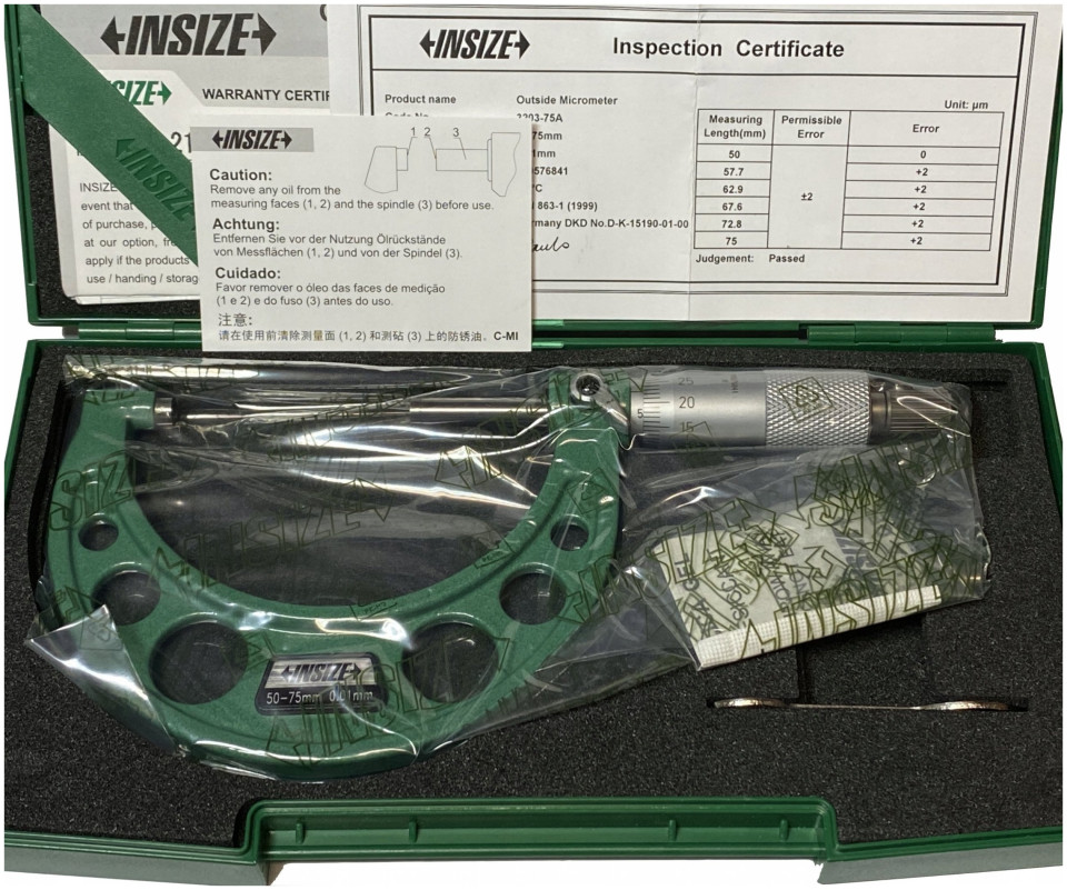 Μικρόμετρο 50-75 mm INSIZEΜικρόμετρο υψηλής ακρίβειας με εύρος 50-75 mm σύμφωνα με το πρότυπο DIN 863 Long connector Ο άξονας και το αμόνι καλύπτονται με επίστρωση σκληρού καρβιδίου, η οποία εξασφαλίζει αντοχή και αντοχή στις επιφάνειες μέτρησης. Τεχνικά στοιχεία: Εύρος μέτρησης: 50-75 mm Ακρίβεια: DIN 863 Διαβάθμιση: 0,01 mm Διαβάθμιση: τύμπανο και μανίκι ματ επιχρωμιωμένος άξονας: fi 6,5 mm, μικρόμετρο βήμα σπειρώματος 0,5 mm Επιφάνειες μέτρησης: κατασκευασμένες από κονιορτοποιημένο αυτοκίνητο σύνδεσμος: σκληρός και ανθεκτικός σε ζημιές Ακρίβεια 5 μm Μήκος: L=82 mm, a=15 mm, b=49 mm