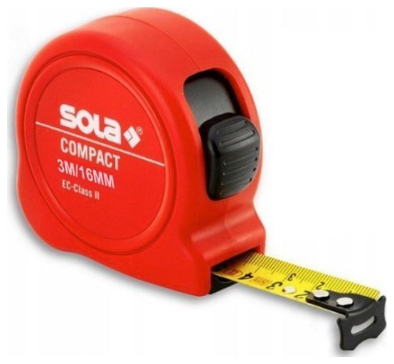 ΤΕΧΝΙΚΑ ΣΤΟΙΧΕΙΑ: Περιγραφή αντικειμένου: Ταινία μέτρησης Κατηγορία ακρίβειας: IIT Υλικό ταινίας: Επιφάνεια ταινίας χάλυβας: ματ λακαρισμένο, κίτρινο Άκρο άγκιστρο: επικαλυμμένο ατσάλι, συρόμενη ταινία Φρένο: Φρένο, 1 τεμαχίου Πριτσίνια για ακραίους γάντζους: 2 άκρο γάντζο με απορροφητικό υλικό απορρόφησης:ABH : κόκκινη πόρπη: Ανοξείδωτο ατσάλι COMPACT. ΕΥΧΡΗΣΤΟΣ. ΑΞΙΟΠΙΣΤΟΣ. ΑΚΡΙΒΕΙΑ Ειδικά για τους τεχνίτες που χρειάζονται πάντα μια σύντομη ταινία έτοιμη για δράση, η SOLA έχει αναπτύξει το μοντέλο COMPACT. Χάρη στο εύχρηστο περίβλημά του κατασκευασμένο από ανθεκτικό σε κραδασμούς πλαστικό ABS και το πρακτικό του μέγεθος, μπορείτε να το έχετε πάντα μαζί σας.**...