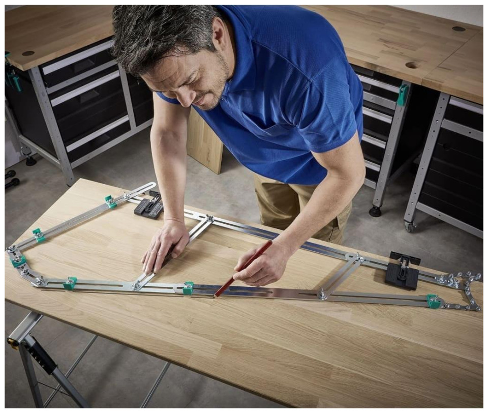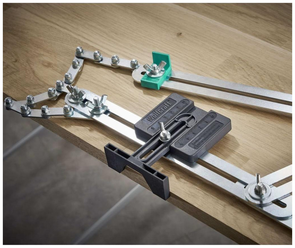 Wysokiej jakości śruby z nakrętkami motylkowymi pozwalają stabilnie ustawić szablon, aby móc przenieść wymiary na element obrabiany swobodnie i bez przesunięć.