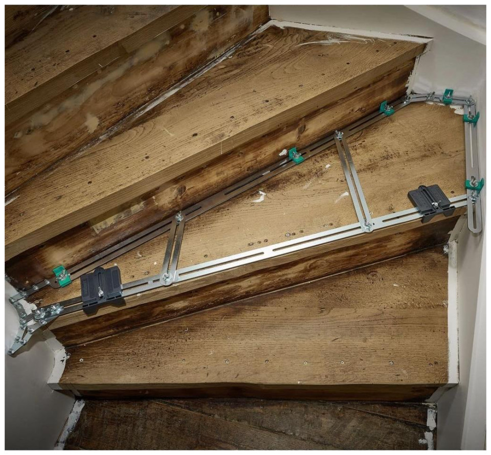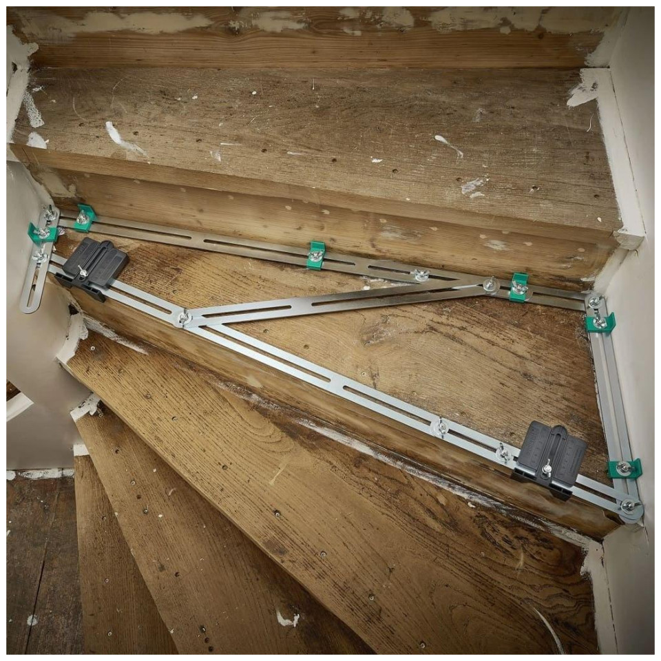 Składany szablon do schodów z wbudowanymi klinami dystansowymi