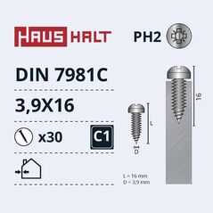 ΒΙΔΕΣ ΑΥΤΟΔΙΑΤΡΗΤΕΣ 3.9X9.5 DIN7981C ZN 30ΤΜΧ