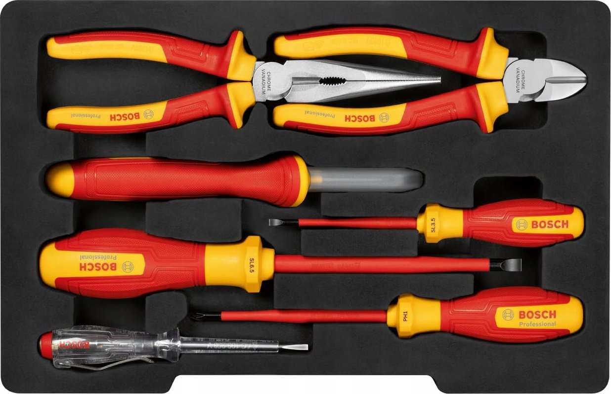 Σετ εργαλείων Bosch Bosch VDE, 7 τεμαχίων (κόκκινο/κίτρινο, πένσα, πένσα με μακριά μύτη, 4 κατσαβίδια, μαχαίρι απογύμνωσης)