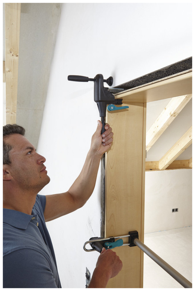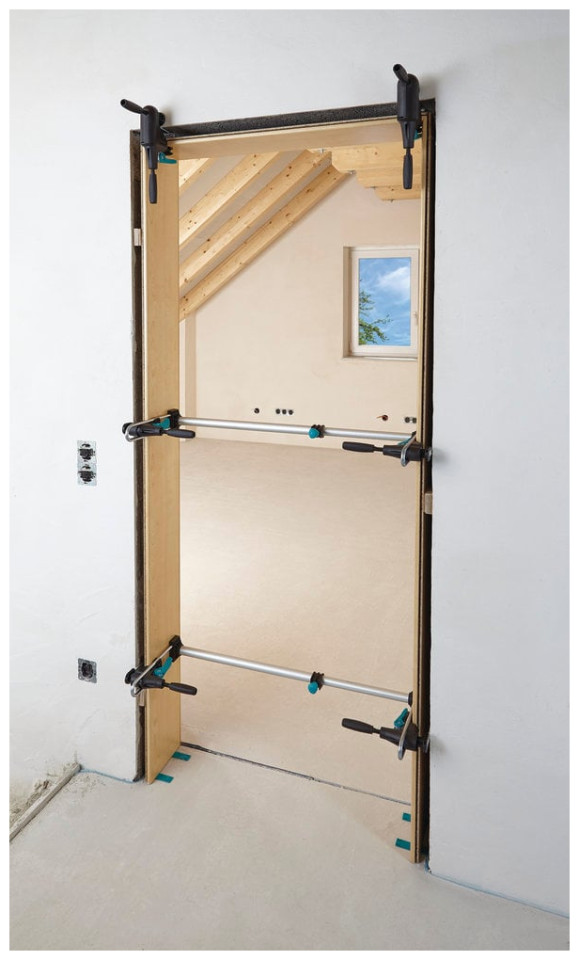 επιτρέπει την ακριβή τοποθέτηση του πλαισίου της πόρτας σε οριζόντια και κάθετη θέση και τη σωστή τοποθέτησή του στο άνοιγμα του τοίχου