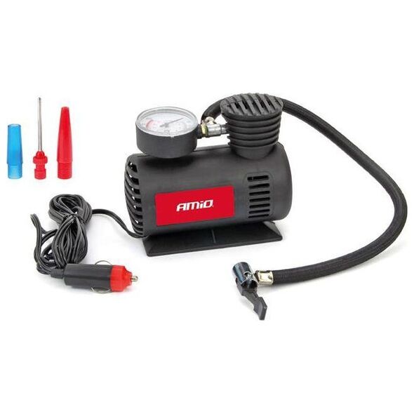 Kompresor samochodowy mini 12V Acomp-14 WŁAŚCIWOŚCI: zasilanie poprzez gniazdo zapalniczki (12 V) ciśnienie eksploatacyjne: 20 barów w zestawie 3 złączki do pompowania do: piłek, materacy, opon rowerowych zintegrowany manometr wykonany z tworzywa sztucznego mały i lekki PARAMETRY TECHNICZNE: napięcie wejściowe: DC 12V maksymalne ciśnienie: 20 bar / 300PSI długość kabla zasilającego: 3 m długość węża: 40 cm WYMIARY: 135 x 75 x 115mm (dł. x szer. x wys.) ZAWARTOŚĆ ZESTAWU: kompresor 2 adaptery igła instrukcja obsługi