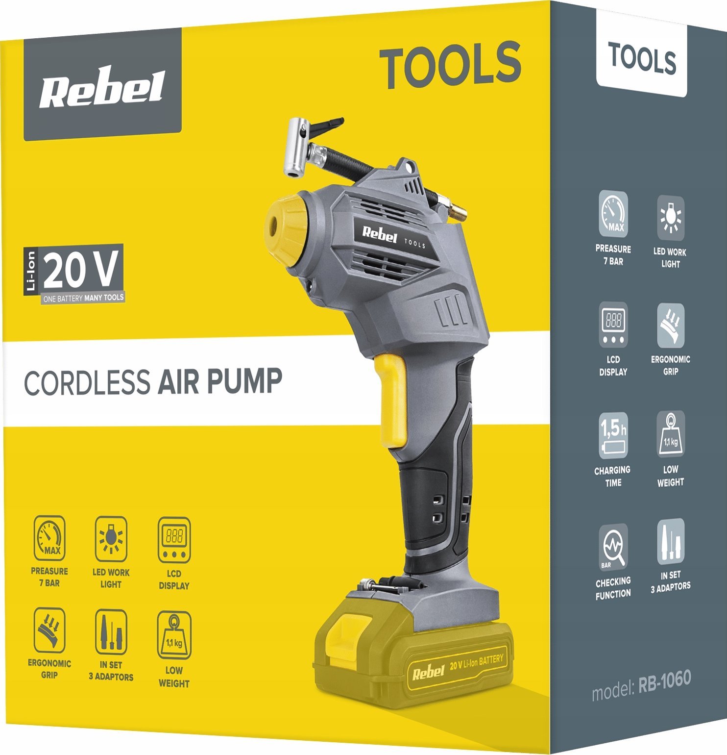 Φορητός αεροσυμπιεστής Rebel 20V 2A 7 bar