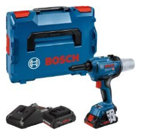 Bosch 0 601 9K5 001. Χρώμα προϊόντος: Μαύρο, Πράσινο, Υποστηριζόμενα μεγέθη πριτσινιών: 3,2,4,4,8,5,0,5,6 mm, Δύναμη έλξης: 16000 kN. Πηγή ισχύος: Μπαταρία, Τεχνολογία μπαταρίας: Lithium-ion (Li-Ion), Χωρητικότητα μπαταρίας: 4 Ah. Πλάτος προϊόντος: 67 mm, Βάθος προϊόντος: 290 mm, Ύψος προϊόντος: 243 mm. Αριθμός μπαταριών που περιλαμβάνονται: 2 τεμ.