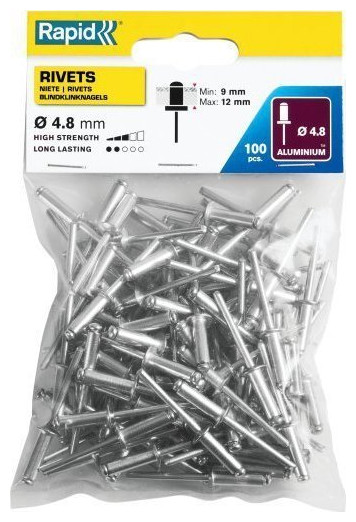 Standardowe nity stworzone do łączenia metali, do prac motoryzacyjnych oraz dekoracyjnych.?4,8 x 16 mmGłówka z aluminium, trzpień ze stali100 szt., w torebce plastikowejDo modeli: RP10, RP40, RP60, RP100...