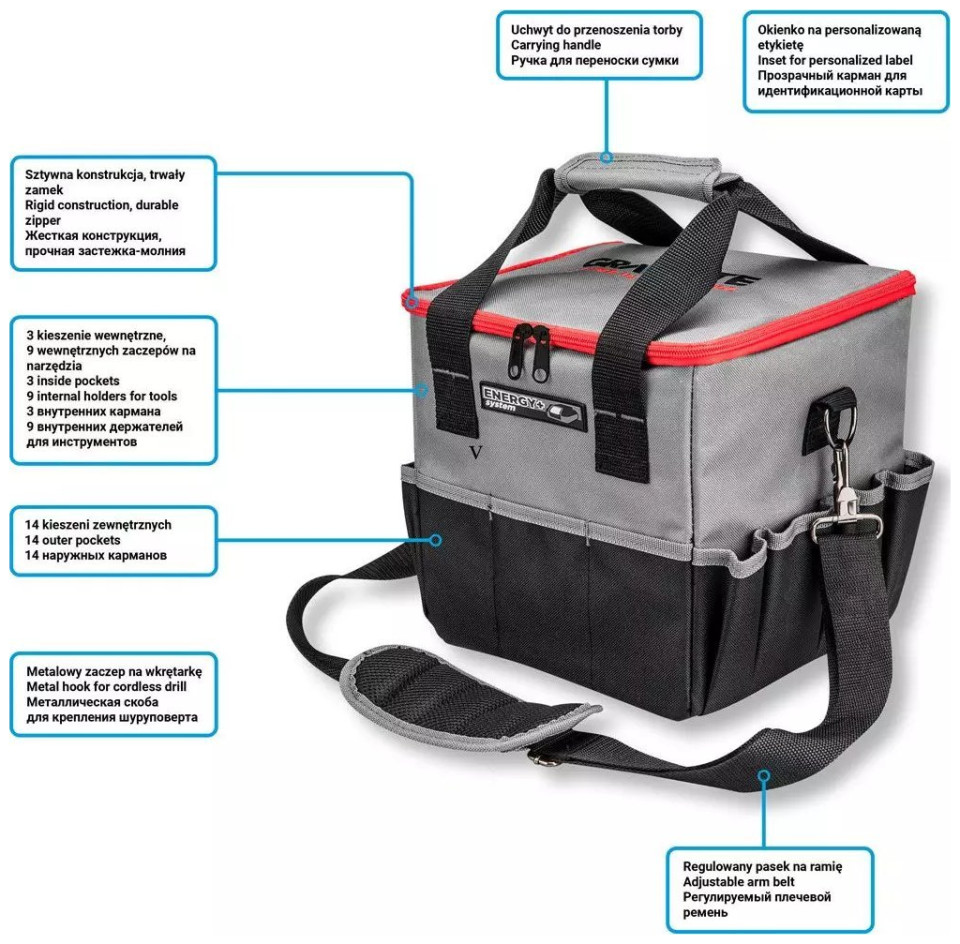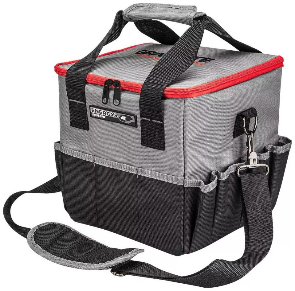 Μια άνετη και πρακτική τσάντα για ηλεκτρικά εργαλεία της μάρκας GRAPHITE, αφιερωμένη στη σειρά συσκευών μπαταρίας Energy+. Το προϊόν είναι σε σχήμα κύβου γενικής χρήσης, διαστάσεων 25x25x25 cm και χωρητικότητας 12 l.
