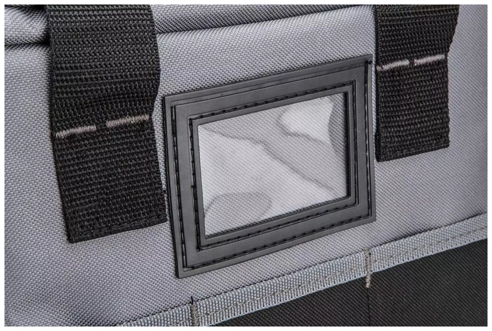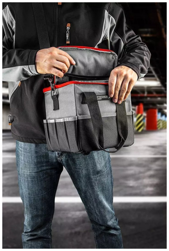 Το προϊόν είναι αφιερωμένο σε δύο ηλεκτρικά εργαλεία και αξεσουάρ (αξεσουάρ, μπαταρίες και φορτιστές). Ένας άνετος, ρυθμιζόμενος ιμάντας σάς επιτρέπει να το προσαρμόσετε σε οποιοδήποτε μέγεθος και ένα εξατομικευμένο παράθυρο ραμμένο στον τοίχο της τσάντας σας επιτρέπει να εκχωρήσετε την ιδιοκτησία σε ένα άτομο.