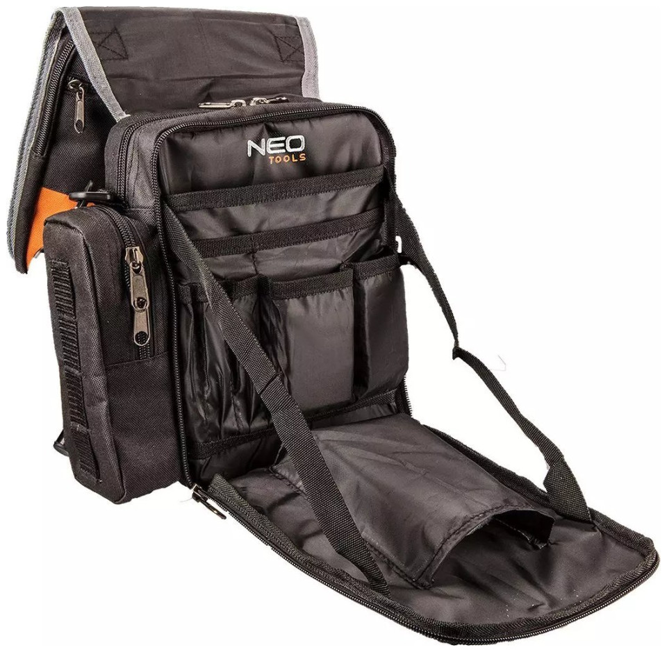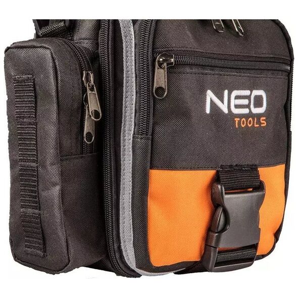 Η τσάντα εργαλείων NEO είναι κατασκευασμένη από ενισχυμένο πολυεστέρα και έχει 4 εξωτερικές και 4 εσωτερικές τσέπες. Η ευρύχωρη κύρια θήκη θα φιλοξενήσει πολλά εργαλεία.