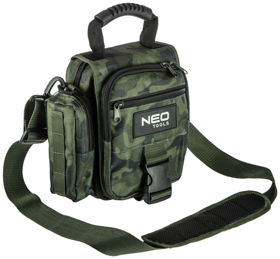 Η τσάντα εργαλείων CAMO NEO (κωδ. 84-323) είναι κατασκευασμένη από ενισχυμένο πολυεστέρα και διαθέτει 4 εξωτερικές και 4 εσωτερικές τσέπες. Η ευρύχωρη κύρια θήκη θα φιλοξενήσει πολλά εργαλεία. Ένα επιπλέον πλεονέκτημα είναι η αναδιπλούμενη δομή που διευκολύνει την εργασία. Η τσάντα διαθέτει ρυθμιζόμενο ιμάντα ώμου, λαβή μεταφοράς και γάντζους για ζώνη για εύκολη χρήση.{Type} Τσάντα εργαλείων . {Adjust strap size} Ναι. {Depth} Δεν υπάρχουν διαθέσιμα δεδομένα. {Υλικό} Ύφασμα. {Height} Δεν υπάρχουν διαθέσιμα δεδομένα. {Width} Δεν υπάρχουν δεδομένα . {Χρώμα} Πράσινο. {Μοντέλο} 84-323