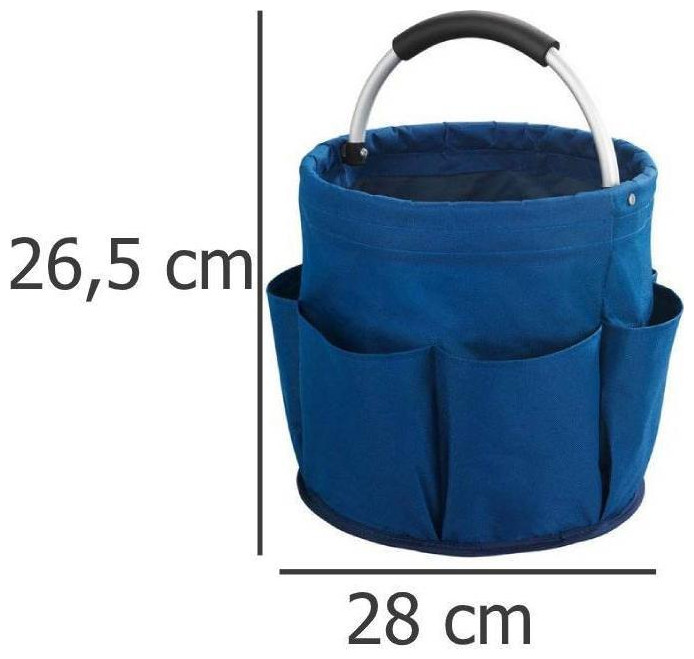 Τσάντα για σκεύη, μπλε ναυτικό, θήκη για σκεύη, ευρύχωρη με τσέπες και χερούλι Χαρακτηριστικά προϊόντος: Υλικά: Πολυεστέρας Χρώματα: Μπλε Ύφασμα: Άλλα Διάμετρος: 28 εκ. Ύψος: 26,5 cm.