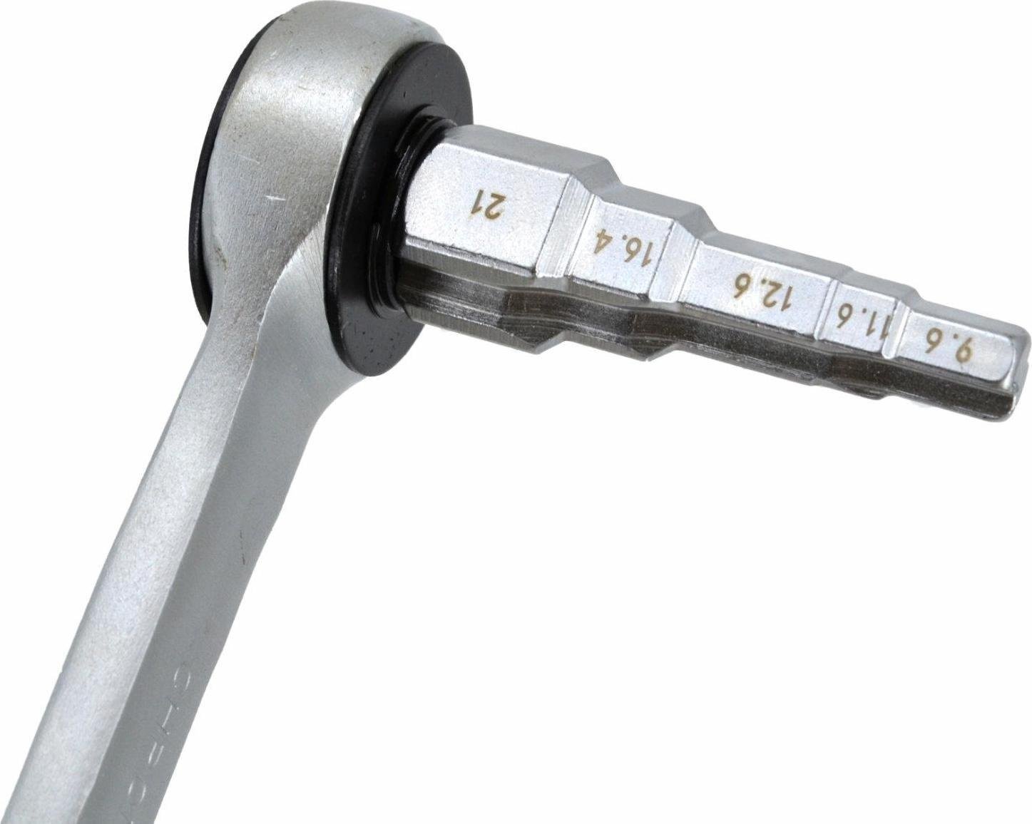 Κλειδί από ατσάλι CrV, επιχρωμιωμένο, Έχει αυλακώσεις και στις δύο πλευρές Σχεδιασμένο για την αποσυναρμολόγηση και την τοποθέτηση των περισσότερων βαλβίδων οικιακού καλοριφέρ, ιδανικό για χαλάρωση ή σύσφιξη ενός παξιμαδιού σε μια τουαλέτα, για την αφαίρεση του ακροφυσίου από ένα σύστημα ενδοδαπέδιας θέρμανσης. και γυρίζοντας συρόμενο παξιμάδι σε νεροχύτη Αντιολισθητική λαβή TPR Ιδιαίτερα κατάλληλη για βίδες με σπείρωμα και στενούς χώρους. Τεχνικά στοιχεία: Υποδοχή: 1/2" Εύρος: (5 μοίρες): 9,6-11,6-12,6-1,4-21 mm Μήκος κλειδιού: περίπου 80 mm Μήκος καστάνιας: 265 mm Βάρος: 0,700 kg{Type} Κλειδιά σωλήνων . {Type} Κλειδιά σωλήνων