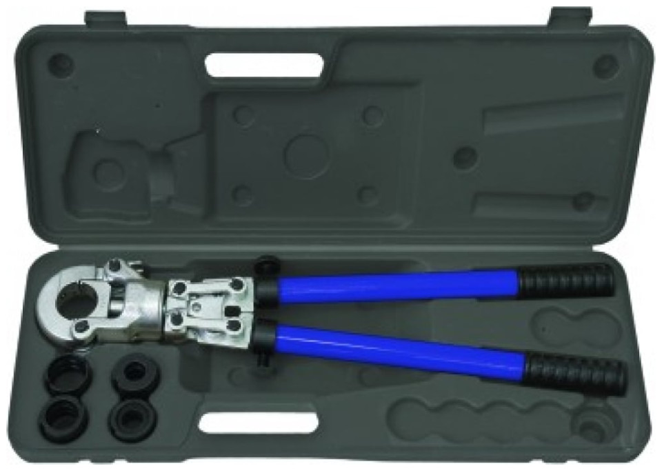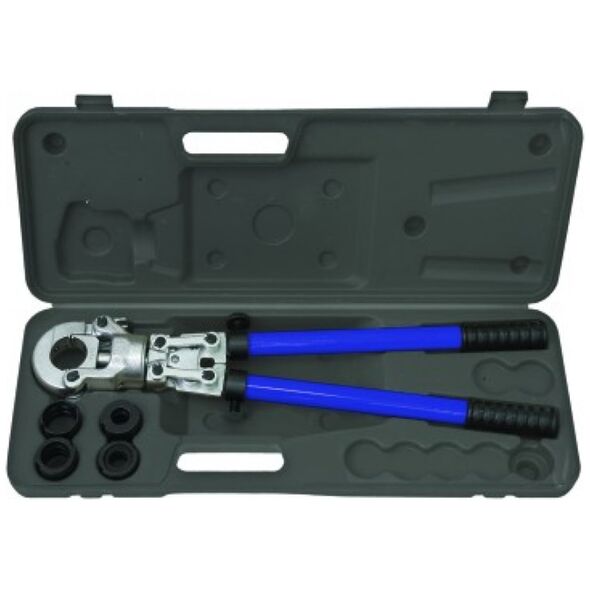 Μηχάνημα σύσφιξης συνδέσμου σωλήνων τύπου U 16-32mm 1266 Μηχάνημα σύσφιξης συνδέσμου σωλήνα τύπου U Σετ δαχτυλιδιών: 16; 20; 25; 32 χιλιοστά Βάρος: 4,91 kg Σύστημα PEX PE-AL-PE {Type} Πρεσαριστές σωλήνων. {Type} Πρεσαριστές σωλήνων