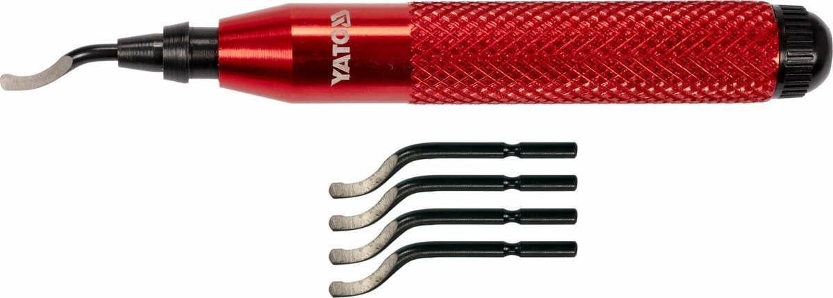 Gratownik z obracalnym ostrzem wykonanym ze stali HSS M2 z solidnym korpusem z anodyzowanego aluminium. Wewnątrz korpusu znajduje się 5 zapasowych ostrzy.