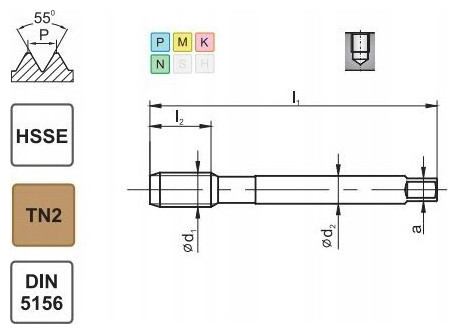 Fanar THREAD G 1/8" DIN-5156C R40 HSSE TIN 800X
