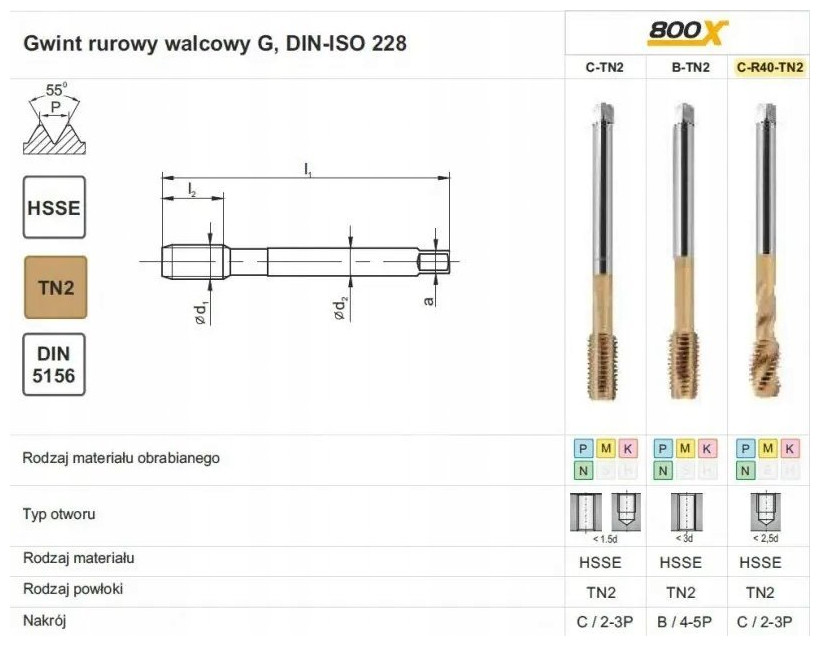 Φανάρι GWINTOWNIK G 1/8" DIN-5156C R40 HSSE TIN 800X