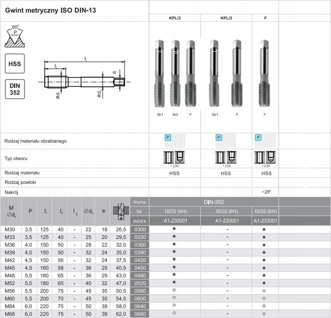 Fanar GWINTOWNIK M 3,5 NGMM/3 DIN-352 (6H) HSS