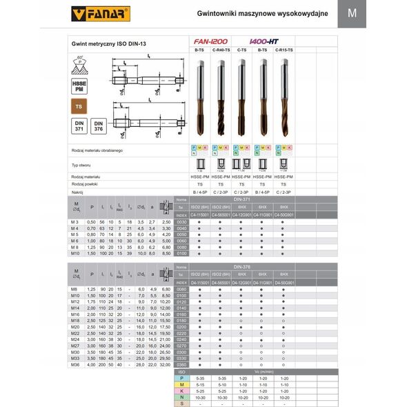 Fanar GWINTOWNIK M 4 DIN-371C R15 (6HX) HSSE-PM TS 1400
