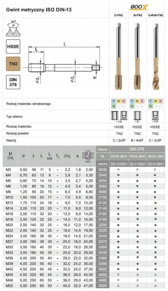 Fanar THREAD M10 DIN-376B (6H) HSSE TN 800X