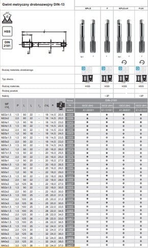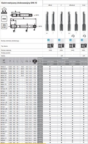 Fanar GWINTOWNIK M12x1,5 NGMM/2 DIN-2181/2 (6H) LH HSS