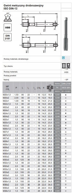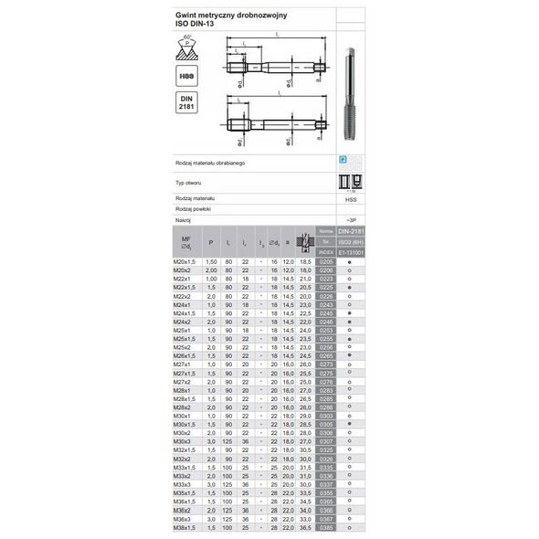 Fanar THREAD M12x1 NGMM/1 DIN-2181D (6H) HSS