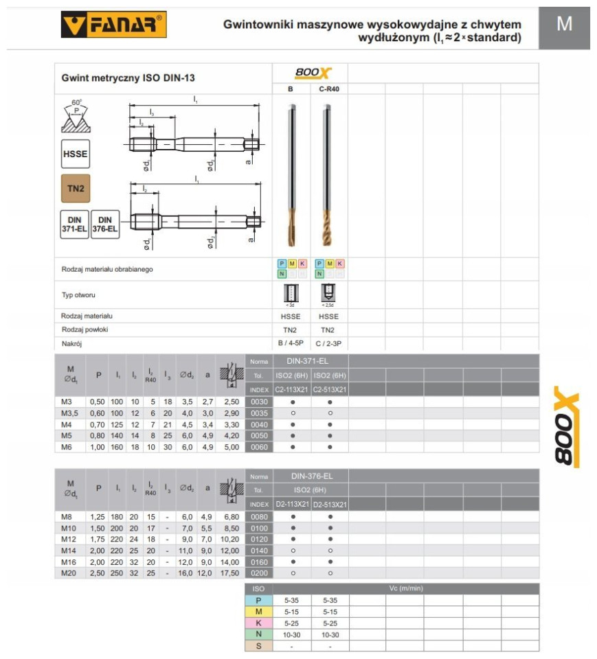Fanar GWINTOWNIK M16 DIN-376B EL (6H) HSSE TN 800X