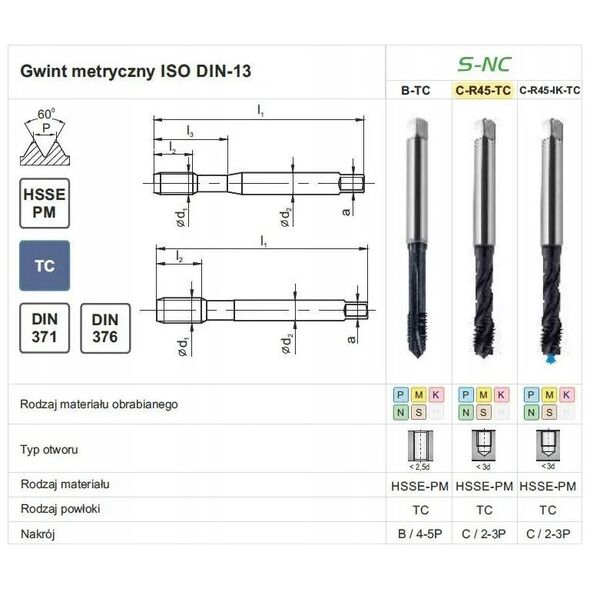 Φανάρ νήμα M16 DIN-376C R45 (6H) HSSE-PMS TICN S-NC