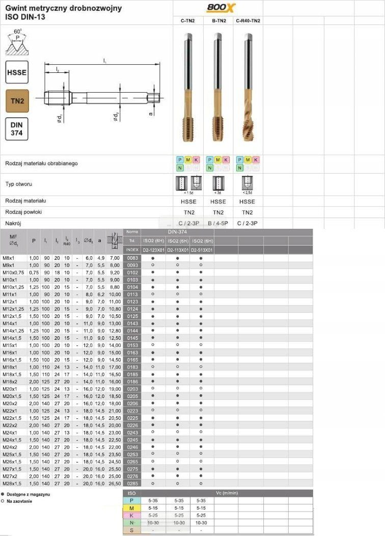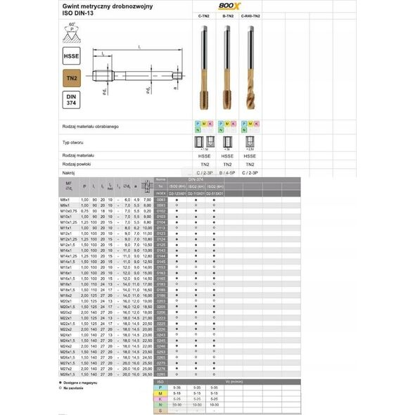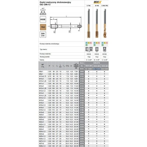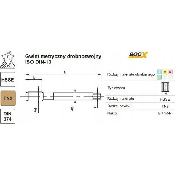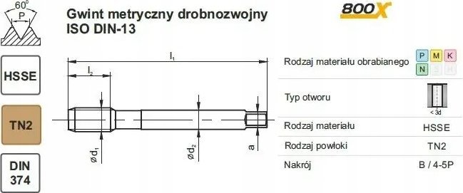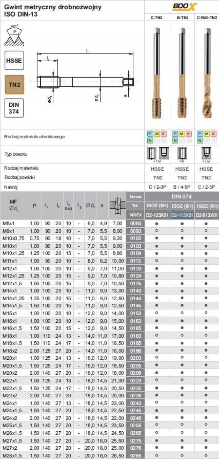 Fanar GWINTOWNIK M18x1,5 DIN-374B (6H) HSSE TN 800X