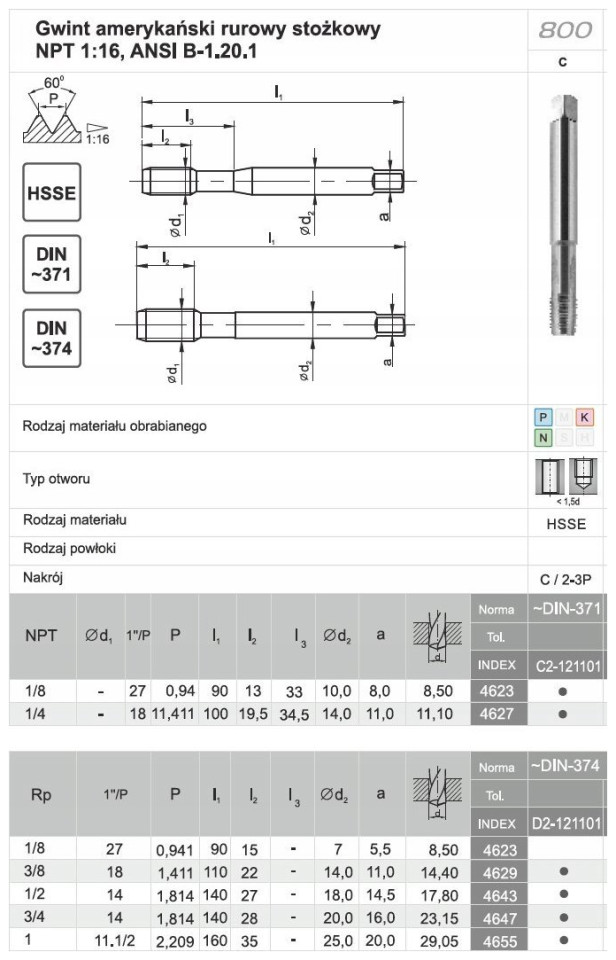 Fanar NPT THREAD 3/4"-14 DIN-374C HSSE 800