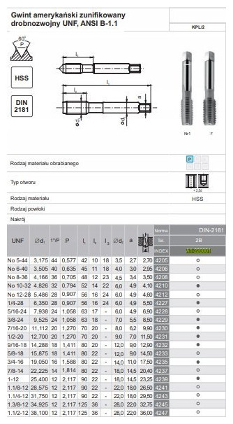 Fanar GWINTOWNIK UNF 3/8-24 DIN-2181/2 (2B) HSS