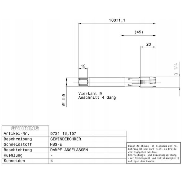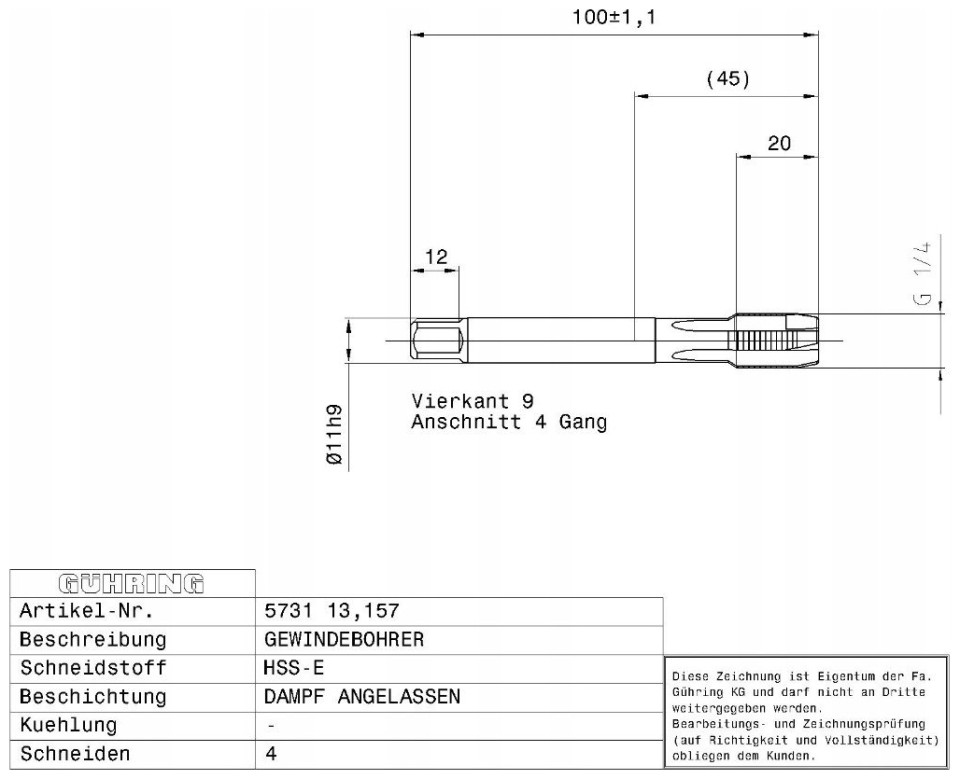 Βρύση μηχανής για διαμπερείς οπές GUHRING HSS-E 5731 G1/4 - 19 στροφές