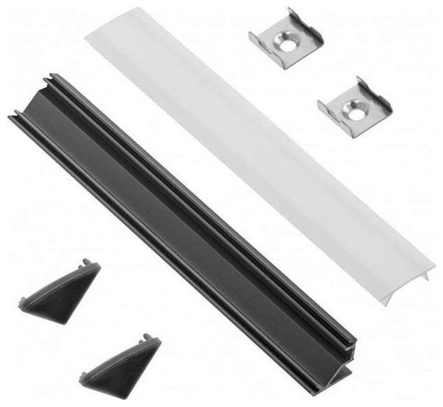 Σετ προφίλ ταινίας LED GTV, γωνιακό, 45 μοίρες, επιφανειακή τοποθέτηση, μαύρο, 2 μ