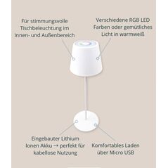 Επιτραπέζιο φωτιστικό Schwaiger Schwaiger LED Tischleuchte Akku 200Lm RGB 380mm λευκό