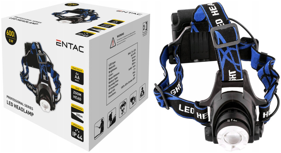 Φακός κεφαλής ENTAC, 5W, 4AA, Alu, 600 lm, εστίαση, μαύρο