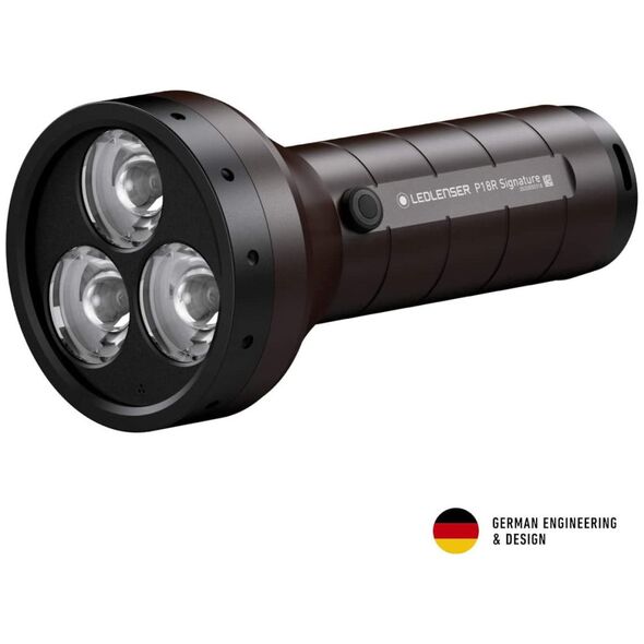 Η νέα σειρά P προσφέρει τεράστιες επιδόσεις σε κομψό σχεδιασμό. Τα προϊόντα της σειράς Core, Work και Signature έχουν διάφορους τύπους εξοπλισμού και τεχνικές παραμέτρους, χάρη στις οποίες είναι αφιερωμένα σε διάφορες ομάδες-στόχους. Από απλούς χρήστες, μέσω επαγγελματιών χειροτεχνίας και βιομηχανίας, μέχρι λάτρεις του εξωτερικού χώρου. Η σειρά Signature είναι η premium σειρά της επωνυμίας Ledlenser. Είναι αφιερωμένο κυρίως στην απαιτητική εξωτερική ζώνη και διακρίνεται από πολλά τεχνικά χαρακτηριστικά, π.χ. εξαιρετική αντοχή και πλήθος αξεσουάρ που διατίθενται στο σετ. Κομψά και πολύ δυνατά περιβλήματα φακών Signature line κατασκευασμένα από ανοδιωμένο κράμα αλουμινίου στη χαρακτηριστική έκδοση Espresso/μαύρο χρώμα. Αυτός ο συνδυασμός τα καθιστά εξαιρετικά ανθεκτικά στη διάβρωση και την ισχυρή μόλυνση. Ο φακός χειρός P18R Signature είναι το κορυφαίο μοντέλο της σειράς Signature. Αυτός είναι ένας κλασικός προβολέας για όλες τις εφαρμογές εξωτερικού χώρου. Χάρη στην ικανότητα να στέκεται ανάποδα, το P18R Signature μπορεί να χρησιμοποιηθεί και ως πρακτική λάμπα. Είναι εξαιρετικά ισχυρό (4.500 lumens και 720 μέτρα εμβέλειας) χάρη στην τεχνολογία X-Lens, μετατρέπει τη νύχτα σε μέρα. Εξοπλισμένο με μια αποδοτική κυψέλη που μπορεί να φορτιστεί χωρίς να χρειάζεται να αφαιρέσετε την μπαταρία από τον φακό μέσω του συστήματος Magnetic Charge System, καθώς και με το Advanced Focus System - ένα κατοχυρωμένο με δίπλωμα ευρεσιτεχνίας σύστημα εστίασης φωτός. Εκπέμπει ουδέτερο λευκό φως με υψηλό δείκτη χρωματικής απόδοσης, αυξάνοντας την ακρίβεια και μειώνοντας την κόπωση των ματιών. Διευκολύνει τη διάκριση των χρωμάτων, την αξιολόγηση των συγκολλημένων αρμών και την ανάγνωση χαρτών και μύθων. Φυσικά, υπήρχε μια πρακτική ένδειξη φόρτισης μπαταρίας. Επιπλέον, το P18R Signature, χάρη στην πρωτοποριακή τεχνολογία Flex Sealing Technology, έχει υψηλό βαθμό προστασίας από νερό, σκόνη και σκόνη. Μια νέα έκδοση του φακού χειρός υψηλής ισχύος από τη Ledlenser. Διαθέτει οκτώ λειτουργίες φωτός: Αναβοσβήνει, Ενίσχυση, Μέση Ισχύς, Χαμηλή ισχύς, Θέση, SOS και Η τεχνολογία X-Lens συγχρονίζει τις μεμονωμένες δέσμες φωτός σε ένα σκληρό ανοδιωμένο υλικό είναι εξαιρετικά ανθεκτικό στο νερό και τη βρωμιά (IP54). Ο φακός τροφοδοτείται από μια μπαταρία ιόντων λιθίου, η οποία μπορεί να φορτιστεί εύκολα χάρη σε έναν μαγνητικό φορτιστή. Επιπλέον, η συσκευή διαθέτει ενσωματωμένη ένδειξη φόρτισης μπαταρίας. Τεχνικές παράμετροι: Ισχύς: 4500 lm – min. 30 lm Αριθμός διόδων: 3 Εύρος: Μέγ. 720 m - ελάχ. 50 m Χρόνος εργασίας: Μέγιστος 70 h - min. 2,5 ώρες Χρόνος φόρτισης: 330 λεπτά Τροφοδοσία: Μπαταρία Li-Ion 3x 18650, 3000 mAh, 11,1 V, 33,3 Wh Διάμετρος κεφαλής: 86 mm Μήκος: 171 mm Βάρος με μπαταρίες: 637 g Περίβλημα: κράμα αλουμινίου BOOST0m – 720 m) / POWER (2600 lm – 420 m) / MID POWER (1000 lm – 260 m) / LOW POWER (30 lm – 50 m) Αναβοσβήνει, Θέση, S.O.S., Strobe Αδιάβροχη κατηγορία: IP54 Θερμοκρασία χρώματος λευκό [K] 6000 έως 72000 Χρώμα (CRI) 70 Περιεχόμενα συνόλου: Φακός P18R Signature Battery Κρεμαστό καρπού Μαγνητικό καλώδιο φόρτισης Μετασχηματιστής USB - Μετασχηματιστής AC Γνήσιο κουτί και εγχειρίδιο χρήσης{Type} Τσέπη . {Πηγή φωτός} LED . {Power} Επαναφορτιζόμενη . {Power}USB
