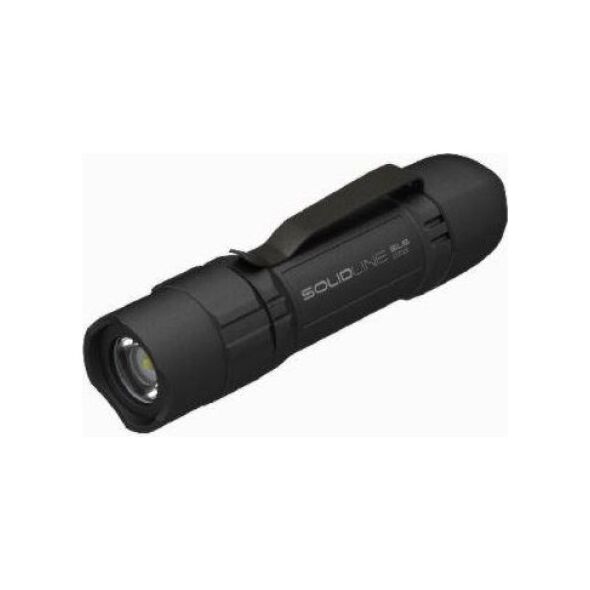 Latarka Ledlenser Solidline SL6 KonstrukcjaTyp latarki: Latarka ręcznaWodoodporny: IP54Kolor produktu: CzarnyMocCzas pracy na zasilaniu akumulatorowym: 25 hRodzaj baterii: 3 x AAAWaga i rozmiaryŚrednica głowicy: 3,2 cmWaga produktu: 130 gZawartość opakowaniaBaterie w zestawie: TakOświetlenieTyp lamp: High Power LEDOdległość wiązki światła (max): 140 mStrumień świetlny: 320 lmLiczba trybów oświetlenia: 3Ilość lamp: 1 lamp(y)Szerokość: 115 mmGłębokość: 30 mmWysokość: 205 mm