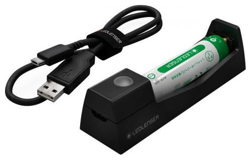 Akumulator Li-Ion 14500, 3.7V, 750 mAh, 2.77 Wh w zestawie z ładowarką USB do latarek Ledlenser MH3, MH4 i MH5.