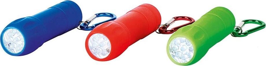 Mix wzoów. Towar wysyłany losowo.Latarka LED z karabińczykiem z kolekcji Expedition Natur. Poręczna latarka kieszonkowa z karabińczykiem. Idealny towarzysz podróży w naturę. Po prostu przypnij do plecaka, kurtki lub paska i gotowe. Wykonana z tworzywa sztucznego o właściwościach antypoślizgowych. 9 diod LED. Baterie w zestawie (3 x AAA). Nigdy nie świeć bezpośrednio w oczy!