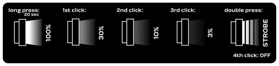 5 λειτουργίες λειτουργίας (ισχύς 100% - για μέγιστο 20 δευτερόλεπτα, ισχύς 30%, ισχύς 10%, ισχύς 3%, στροβοσκόπιο)